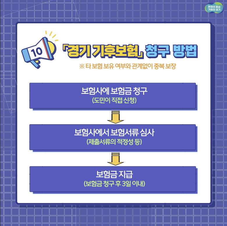 기후특보 발생일 이후 3년 내 청구 가능하며, 본인이 직접 보험사에 청구해야 합니다.