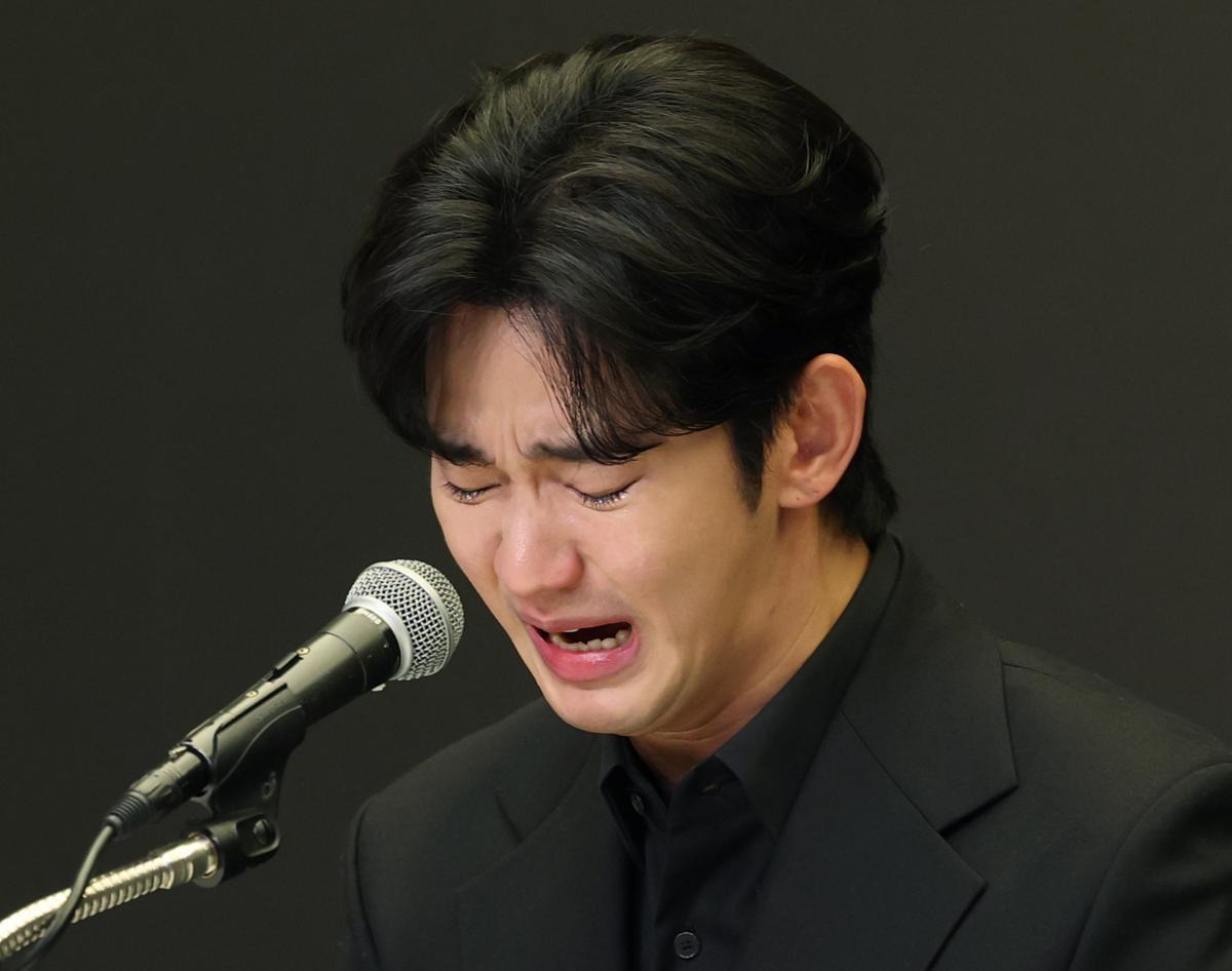 하지만 저는 그럴 수 없었습니다. 저를 협박하면서 거짓을 사실이라고 인정하라는 강요를 받아들일 수 없었습니다. 여러분들이 가장 궁금해하시는 부분에 대해 말씀드리겠습니다. 저는 고인이 미성년자이던 시절 교제를 하지 않았습니다. 그리고 고인이 저의 외면으로 인해 또 저의 소속사가 고인의 채무를 압박했기 때문에 비극적인 선택을 했다는 것 또한 사실이 아닙니다.