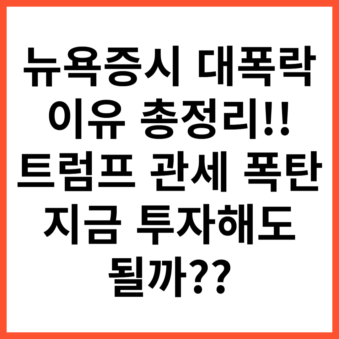 최근 뉴욕증시가 그야말로 롤러코스터 장세를 보이고 있습니다. 미국 투자자들 사이에서도 "5년 만의 최대 낙폭", "관세 폭탄", "무역 전쟁 시즌2"라는 표현이 나올 정도로 시장은 충격에 빠졌습니다. 이번 포스팅에서는 뉴욕증시 폭락 원인, 트럼프 관세 정책, 그리고 앞으로의 미국 증시 전망까지 상세하게 분석해보겠습니다.