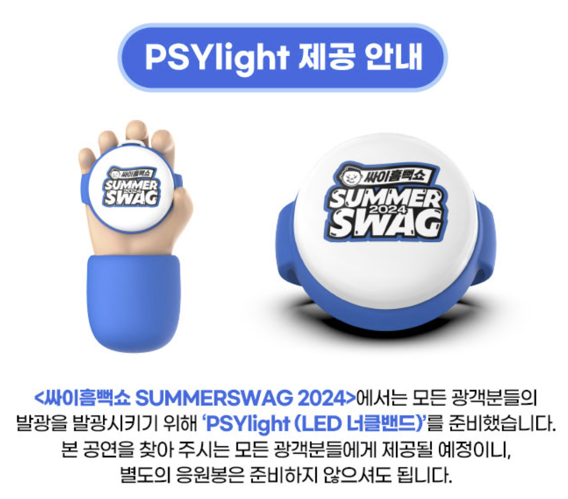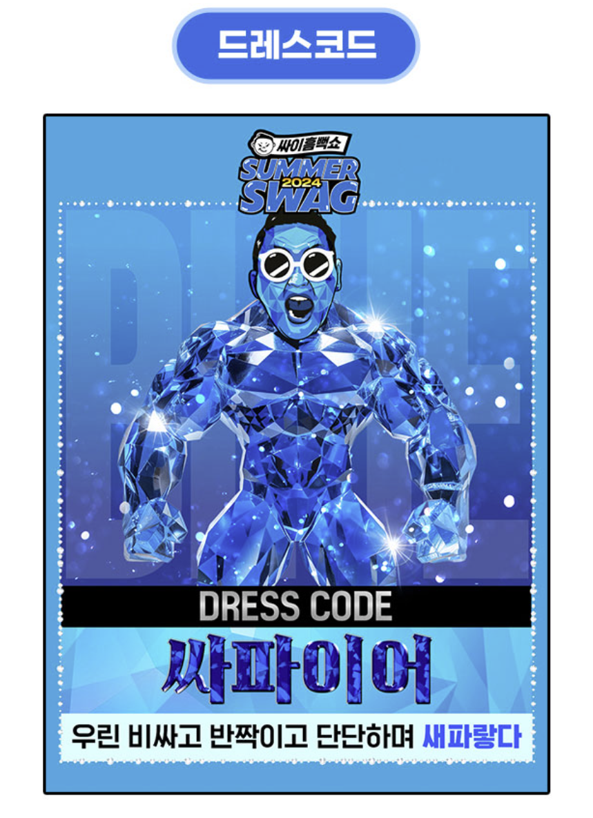 싸이 본인도 공연 중 파란 의상을 입고 등장하며, 관객들도 파란색 옷으로 분위기를 맞춰주는 게 전통처럼 되어 있어요.