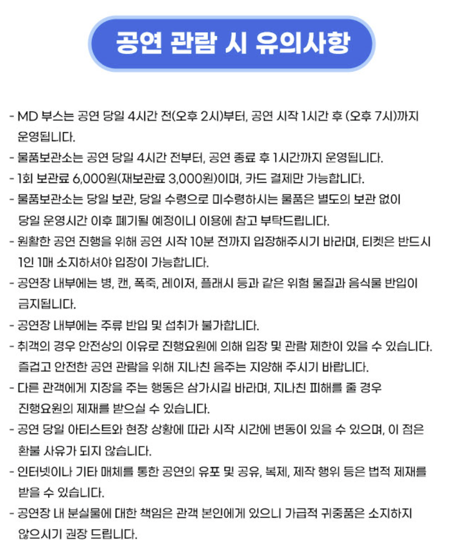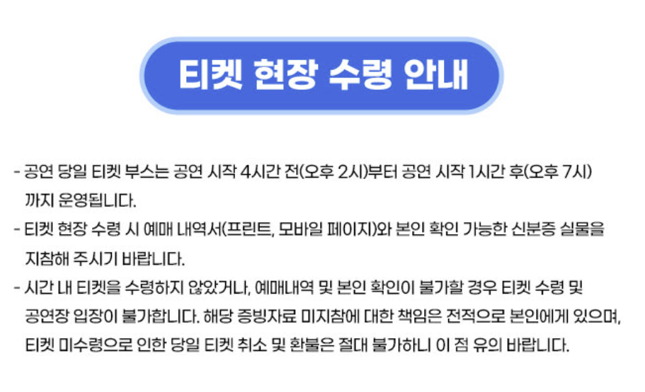 👉 공연 시작 1시간 30분 전까지 도착 추천