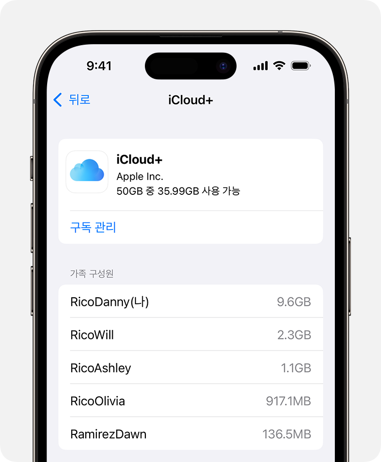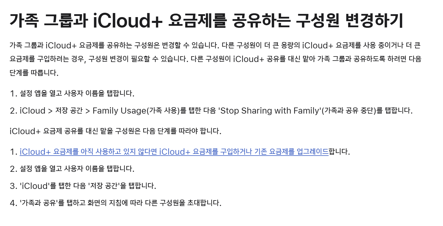 “우리 가족 모두 아이폰인데, iCloud 요금제도 같이 쓸 수 있나요?”