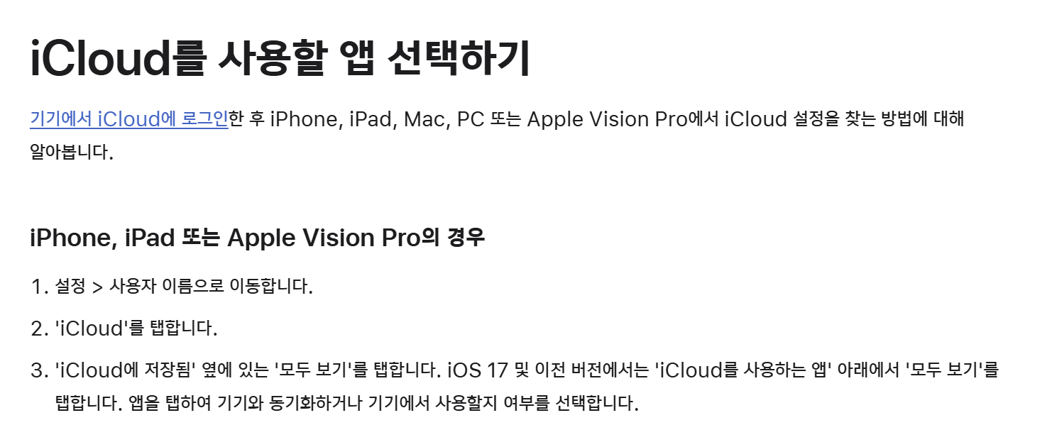 아이클라우드 연동 해제 방법 (iOS 17 기준)