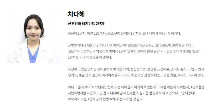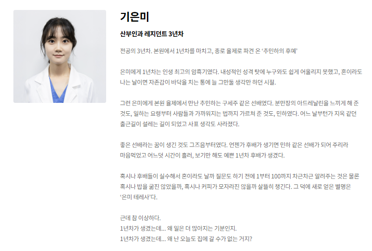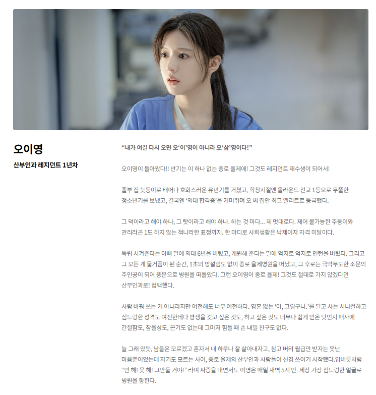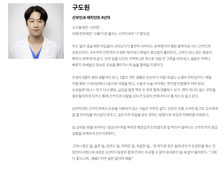 - 한때 아이돌 그룹 멤버, 지금은 산부인과 레지던트