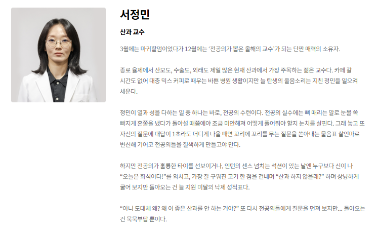- 서정민 교수: 산부인과의 간판 교수, 까칠하지만 매력적