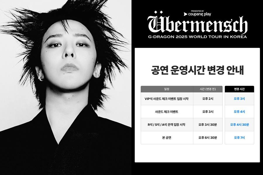 지드래곤(G-DRAGON)의 2025 단독 콘서트 ‘위버맨쉬’ 공연 일정이 기상 악화로 인해 변경되었습니다.