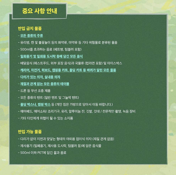 - 의자 및 테이블 반입 불가, 휠체어 사용자 예외