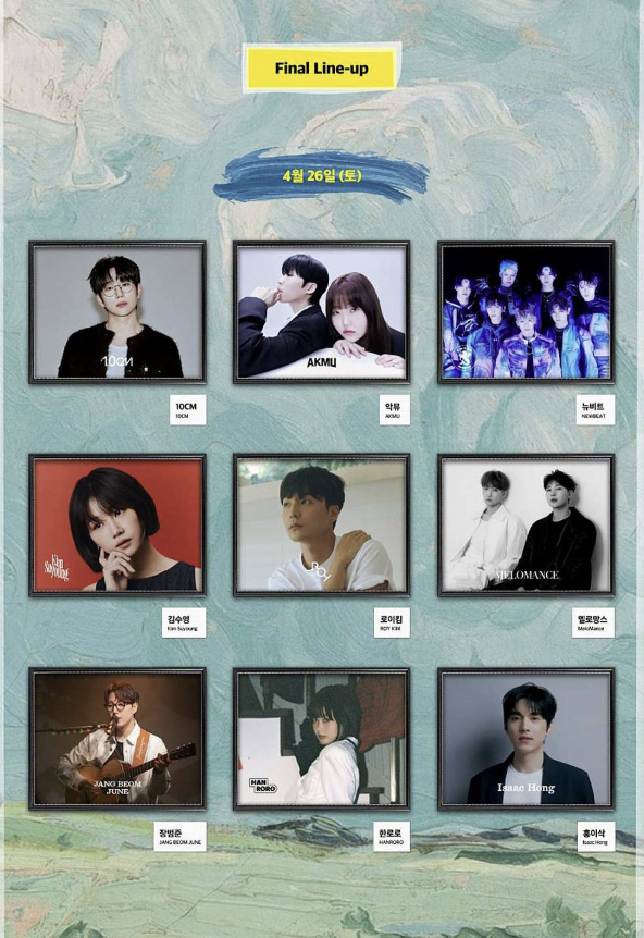 로이킴, 멜로망스, 카더가든, 글렌체크, 나상현씨밴드, 뉴비트